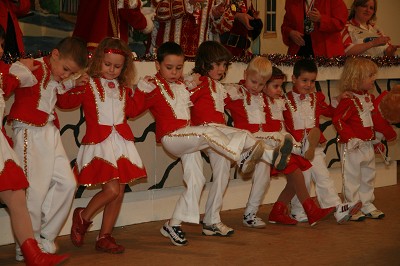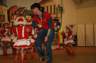 Das Ollheimer Kinderprinzenpaar gibt sich die Ehre - und wenn beim Tanzen einer fehlt, hilft die auch schon mal die Trainerin aus